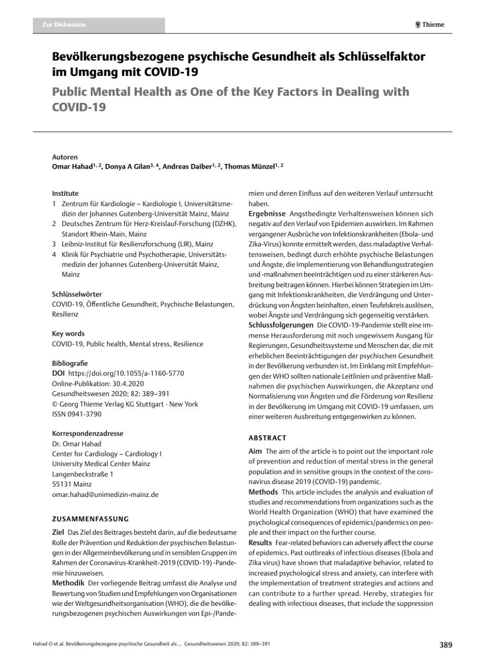 Bevölkerungsbezogene psychische Gesundheit als Schlüsselfaktor im Umgang mit COVID-19.